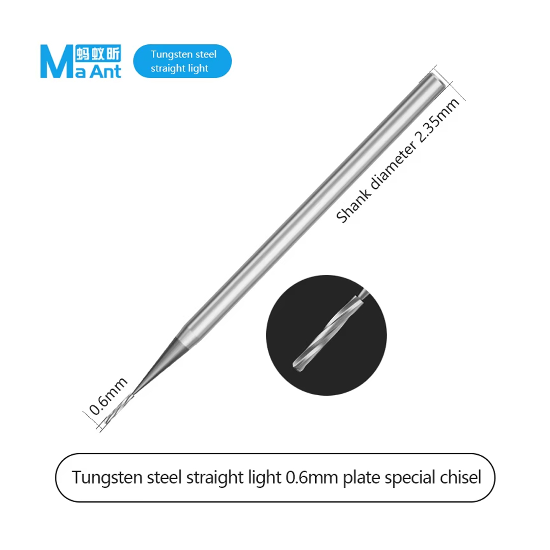 Upgrade your precision cutting with Maant Tungsten Steel Knife Set (6pcs) – available in 0.4mm, 0.5mm, and 0.6mm sizes with a universal 2.35mm shaft. Crafted from premium tungsten steel, these knives deliver sharpness, durability, and high-speed rotation stability, making them ideal for PCB engraving, mobile repair, micro-drilling, and BGA rework.