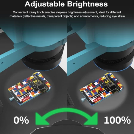 • Adjustable Brightness: Convenient rotary knob enables stepless brightness adjustment, ideal for different materials (reflective metals, transparent objects) and environments, reducing eye strain