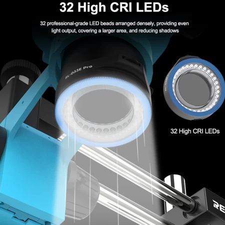 Relife RL-033E Pro 32 LED Beads Polarized Anti-Reflective Adjustable Microscope Light