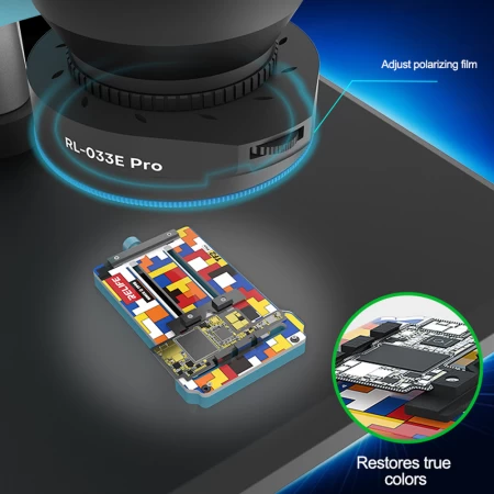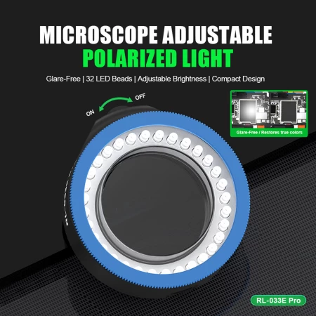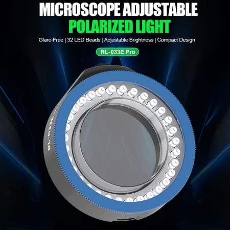 • RL-033E Pro microscope adjustable polarized light, glare-free, 32 LED beads, adjustable brightness, compact design