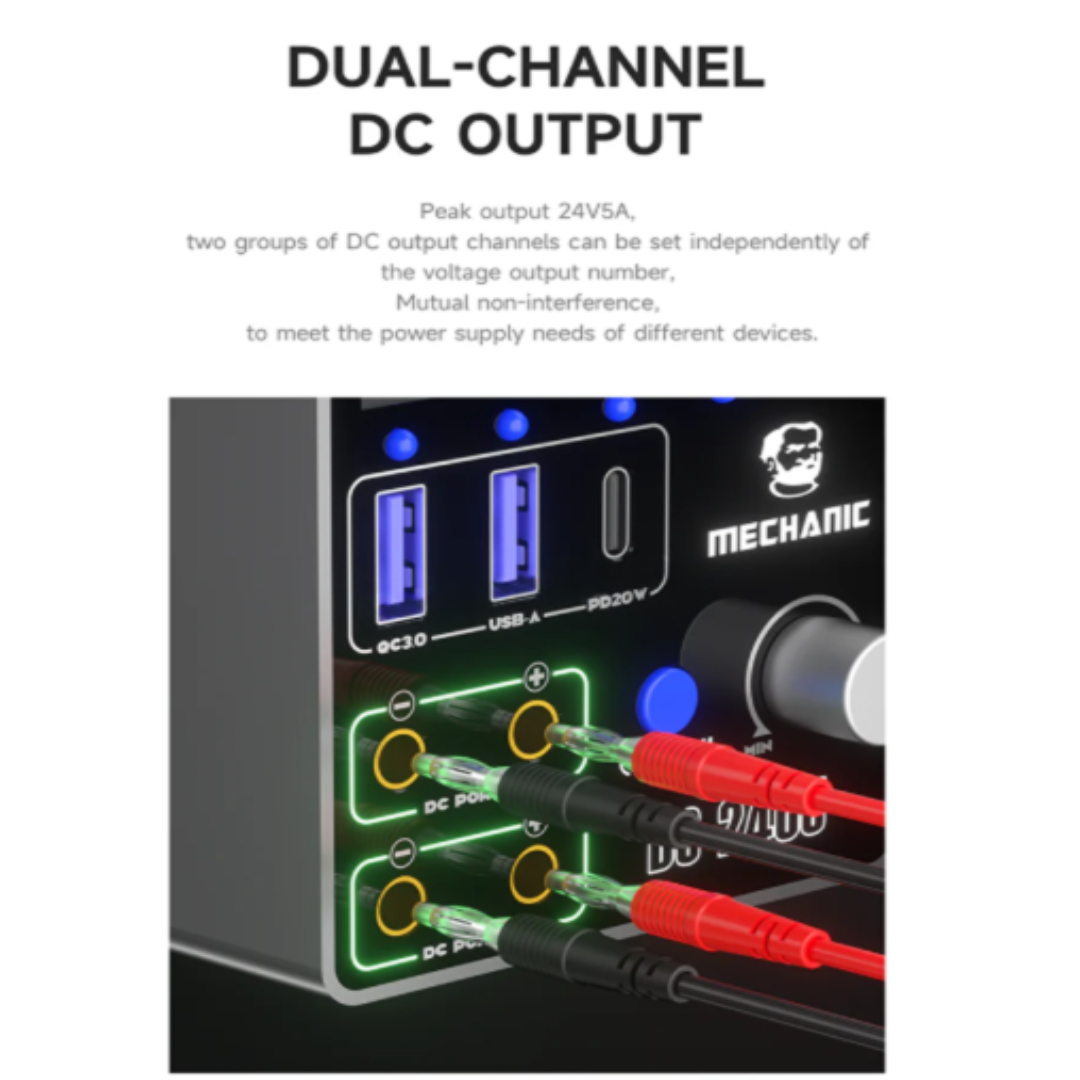 TheMECHANIC DC-2405 PLUS DIGITAL POWER SUPPLY is a high-precision, adjustable power source designed for mobile repair, electronics testing, and circuit diagnostics. With accurate voltage and current control, this power station delivers stable output, digital monitoring, and short-circuit protection—ideal for professional technicians.