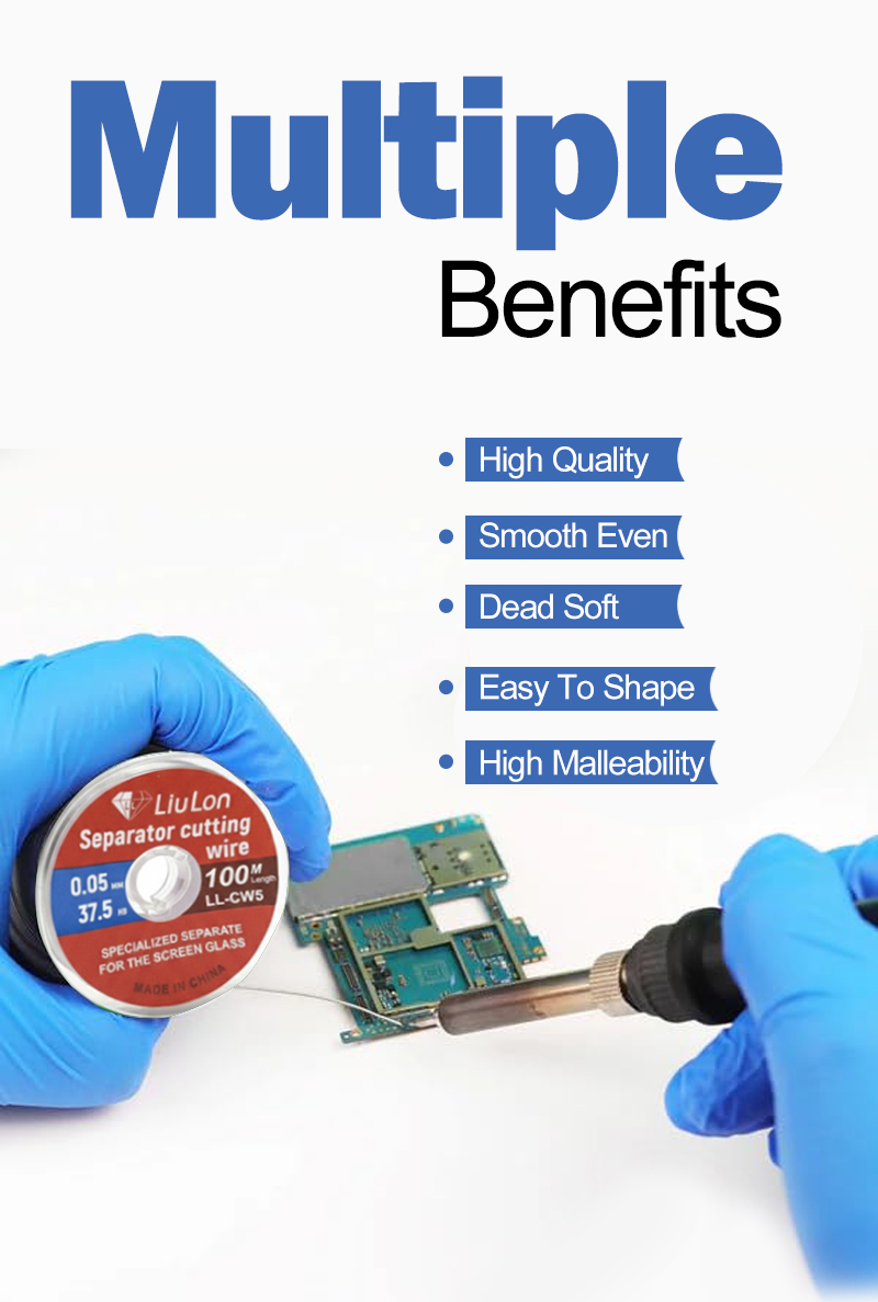 The LIULON LL-CW5 0.05mm 100M Separator Cutting Wire is a premium-quality ultra-thin separation wire specially designed for professional mobile phone and tablet repair technicians. Made from high-strength alloy material
