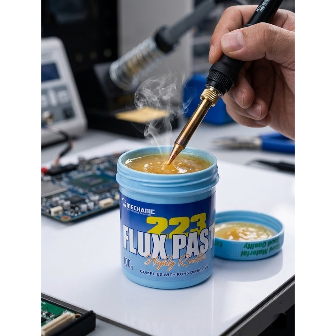 1. Mechanic 223 100G High Activity Flux Paste Solder flux is a mixture of high-quality alloy powder and rosin paste flux, it can avoid pale yellow residue.